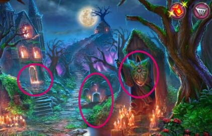 把【浮雕碎片】放进去,启动左边的机关。进入小游戏,找到相对应的物品,拿到【新月】。放进左边圆盘里,把【钝镰刀】放在右边的磨石上打磨,拿到【镰刀】。割开藤蔓,进入【洞穴场景】。