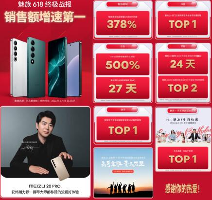 不仅仅是直播成绩优秀,在魅族官方公布的618最终战报来看,魅族旗舰机型销量达成去年同期的378%,在京东、抖音、快手等平台都取得了傲人的战绩。此外,魅族20系列还收获了安兔兔 5 月安卓手机好评榜 TOP1,魅族20 获鲁大师 618 3000 元档推荐机型 TOP1等等,不仅是销量优秀,更是有口皆碑。