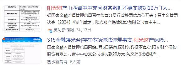 存在多项违法违规事实,阳光财产保险多家公司被处罚