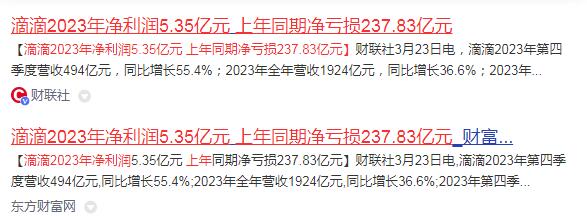 滴滴财报2023年净利润5.35亿元 上年同期净亏损237.83亿元
