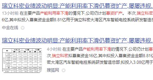 瑞立科密业绩波动明显:产能利用率下滑仍募资扩产,屡屡违规被罚