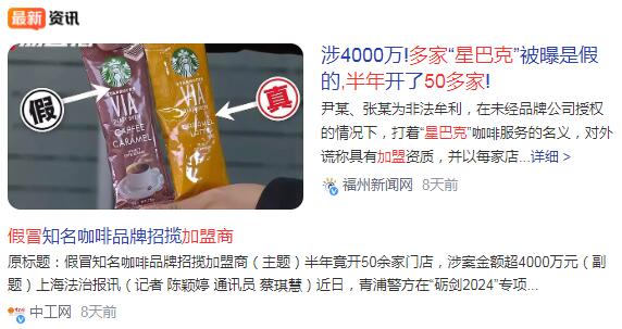 餐饮行业又出新型“加盟”骗局!“李鬼”冒充星巴克招揽加盟商,半年开店50家,骗取4000万元!