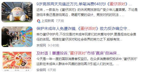 2023年9月,上海消保委公开点名“蛋仔派对”,称其存在大量未成年充值问题,并发出“大多数孩子是缺乏自制力的,网易游戏在设计防沉迷系统时,难道没有考虑过孩子会绕着走吗?”“家长的姓名和身份证号在一个家庭中其实是非常容易获取的信息,如果孩子用家长的信息实名认证后,所有的约束都会失效,那么防沉迷系统不就成为了一个摆设了吗?”等质问。