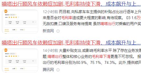 不难看出,提供顺风车平台服务的毛利率持续下滑之余,提供智慧出租车服务的毛利率不仅录得负值,且负增长不断扩大。