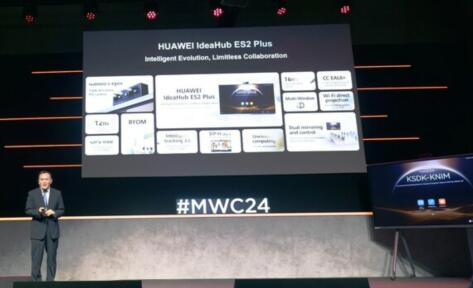 MWC24 巴塞罗那期间,在以"协作无界,智领未来"为主题的新品发布会上,华为发布旗舰级协作终端IdeaHub ES2 Plus,实现了多项技术突破和产品创新,引领企业办公数字化、智能化。