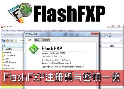 FlashFXP是一款功能强大的FTP软件,该软件支持彩色文字显示,支持文件夹的文件传送、删除,以及支持上传、下载及第三方文件续传,用户可以跳过指定的文件类型,只传送需要的文件,在提高文件传输效率的同时,大大减少工作的时间。以下是FlashFXP通用的注册码与密钥: